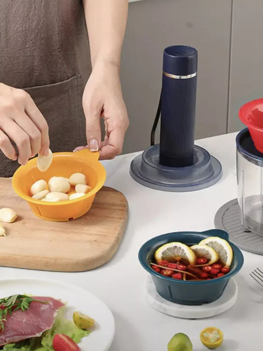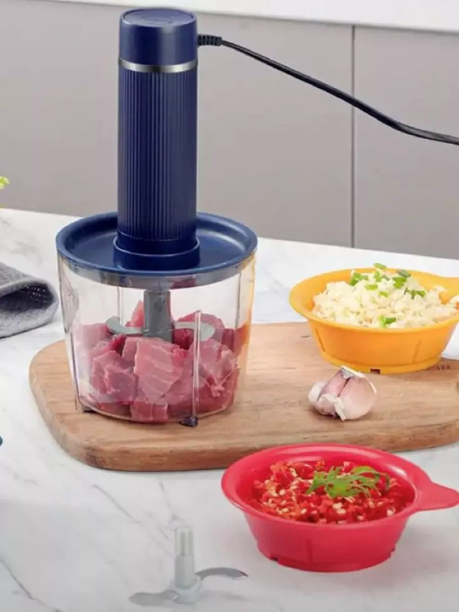 🔪 شفرات فولاذية حادة لفرم الثوم، البصل، الفلفل، اللحم والخضار في ثوانٍ.